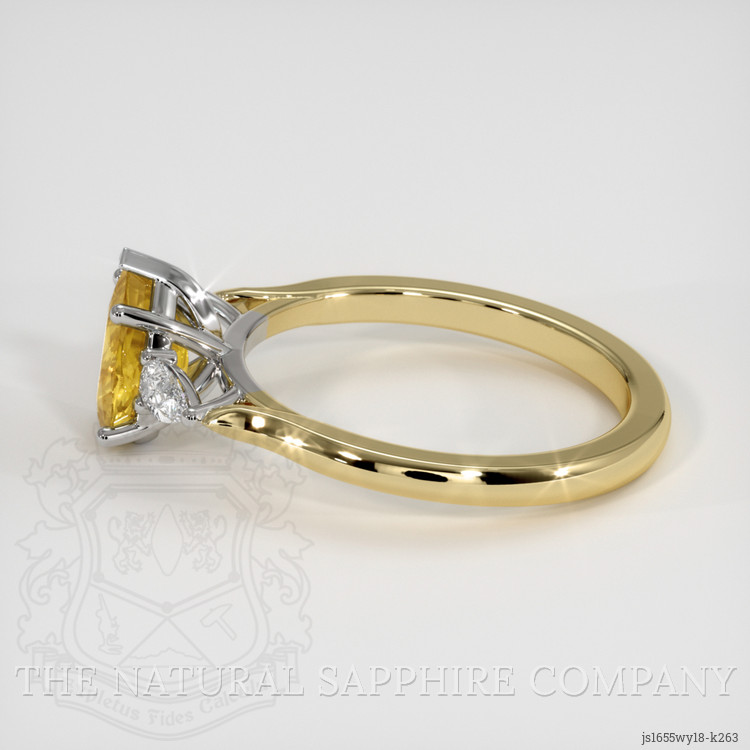 The ring features a beautiful, transparent 1.27 carat pear shape greenish yellow chrysoberyl with the dimensions of 8.30 x 5.77 x 3.71 mm and a mixed brilliant cut. It has a clarity grade of very slightly included (evaluated at eye level), intense color saturation, and an excellent polish. The origin of this chrysoberyl is Ceylon (Sri Lanka).