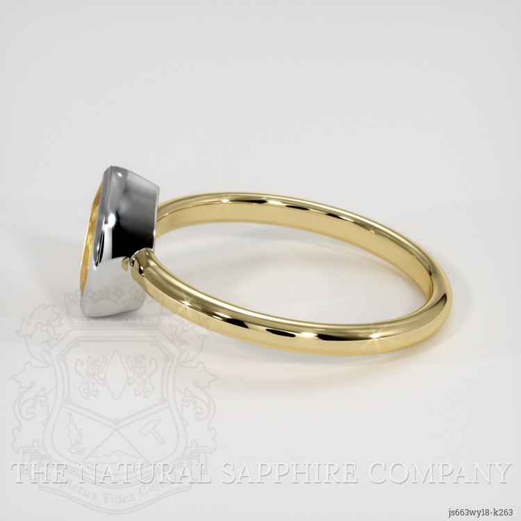 The ring features a beautiful, transparent 1.27 carat pear shape greenish yellow chrysoberyl with the dimensions of 8.30 x 5.77 x 3.71 mm and a mixed brilliant cut. It has a clarity grade of very slightly included (evaluated at eye level), intense color saturation, and an excellent polish. The origin of this chrysoberyl is Ceylon (Sri Lanka).