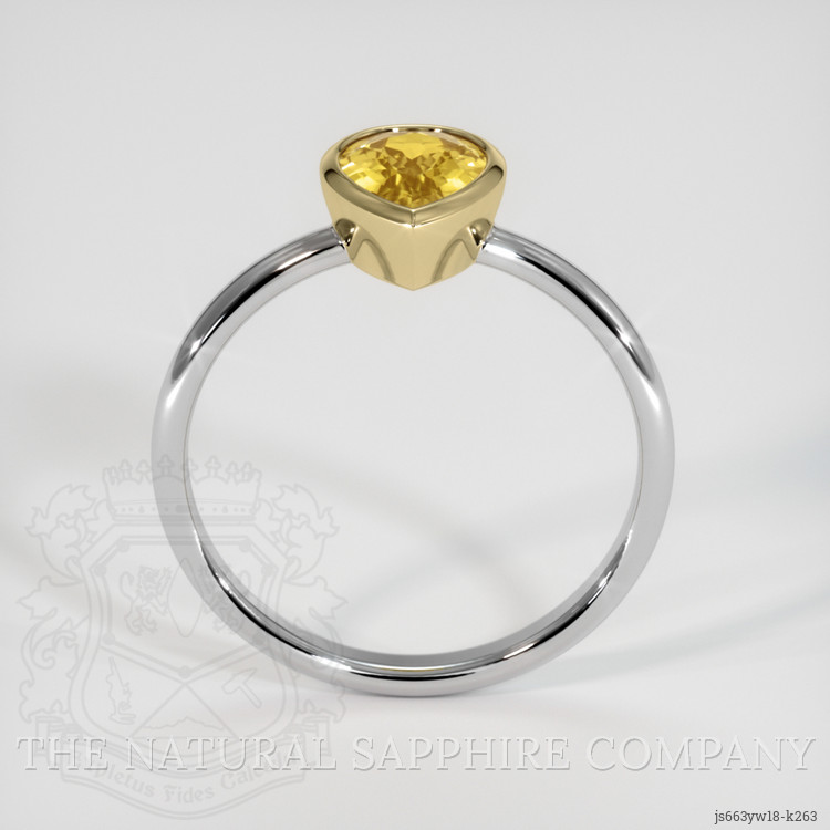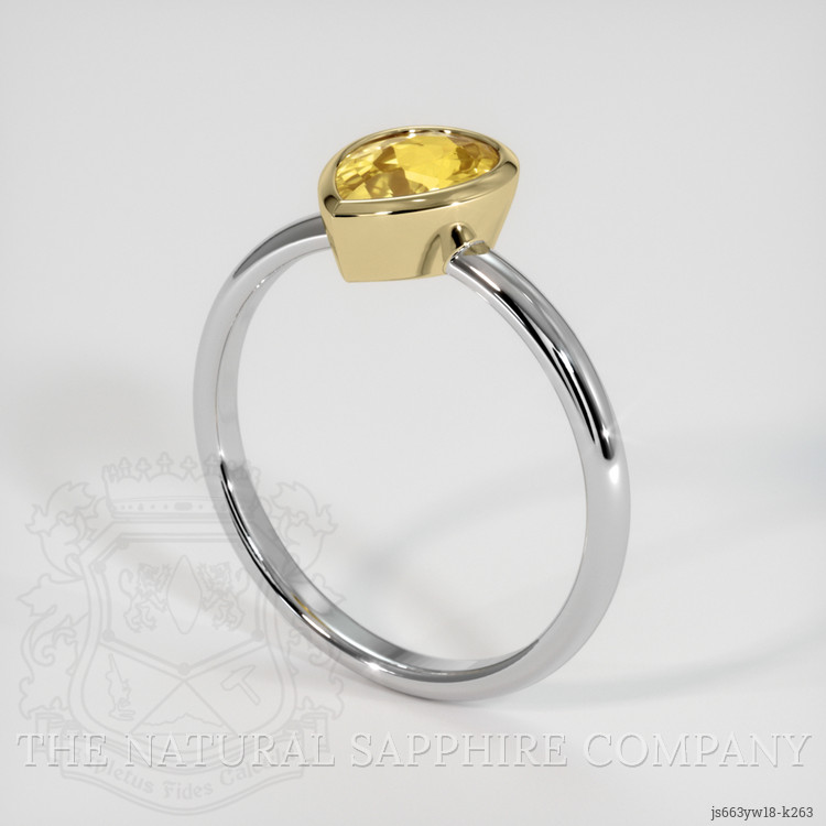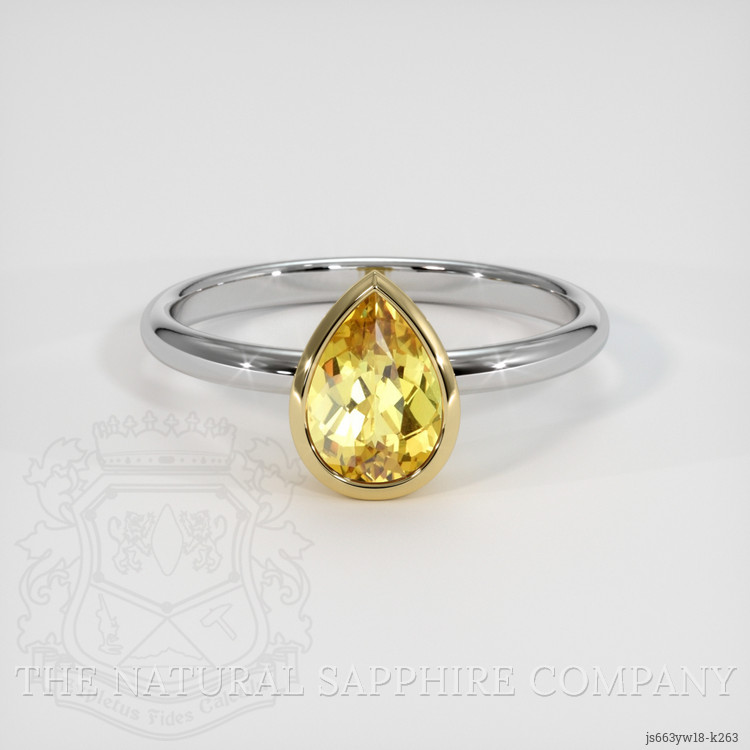 The ring features a beautiful, transparent 1.27 carat pear shape greenish yellow chrysoberyl with the dimensions of 8.30 x 5.77 x 3.71 mm and a mixed brilliant cut. It has a clarity grade of very slightly included (evaluated at eye level), intense color saturation, and an excellent polish. The origin of this chrysoberyl is Ceylon (Sri Lanka).