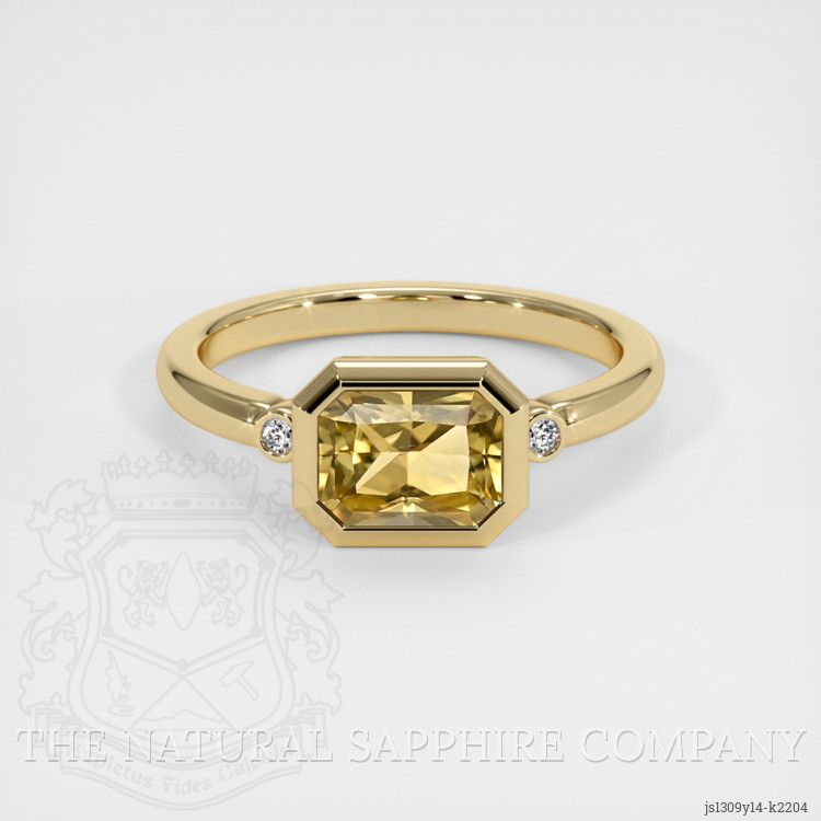 The ring features a beautiful, transparent 1.77 carat radiant shape greenish yellow chrysoberyl with the dimensions of 7.37 x 5.80 x 4.90 mm and a radiant cut. It has a clarity grade of very slightly included (evaluated at eye level), intense color saturation, and an excellent polish. The origin of this chrysoberyl is Ceylon (Sri Lanka).