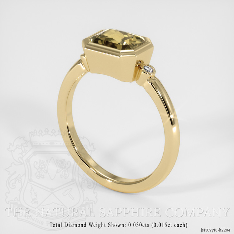 The ring features a beautiful, transparent 1.77 carat radiant shape greenish yellow chrysoberyl with the dimensions of 7.37 x 5.80 x 4.90 mm and a radiant cut. It has a clarity grade of very slightly included (evaluated at eye level), intense color saturation, and an excellent polish. The origin of this chrysoberyl is Ceylon (Sri Lanka).