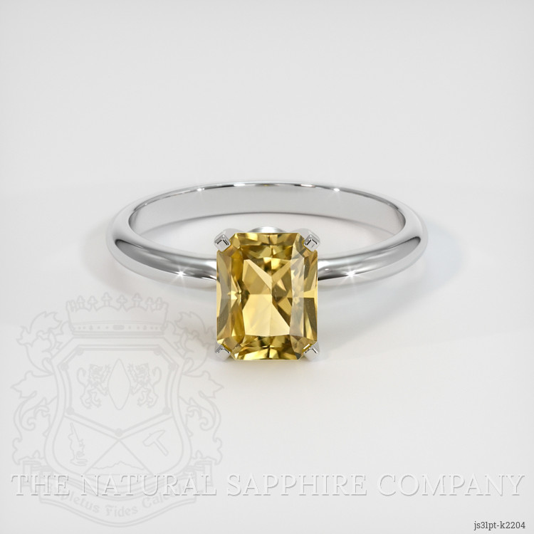 The ring features a beautiful, transparent 1.77 carat radiant shape greenish yellow chrysoberyl with the dimensions of 7.37 x 5.80 x 4.90 mm and a radiant cut. It has a clarity grade of very slightly included (evaluated at eye level), intense color saturation, and an excellent polish. The origin of this chrysoberyl is Ceylon (Sri Lanka).