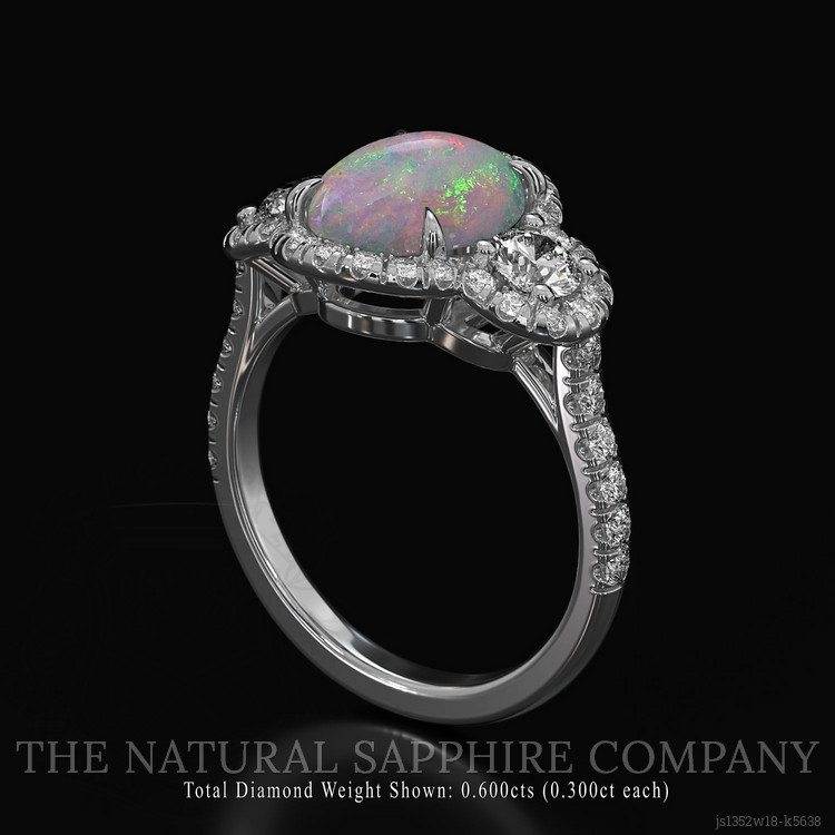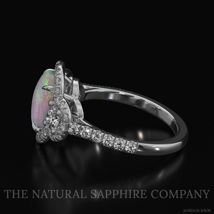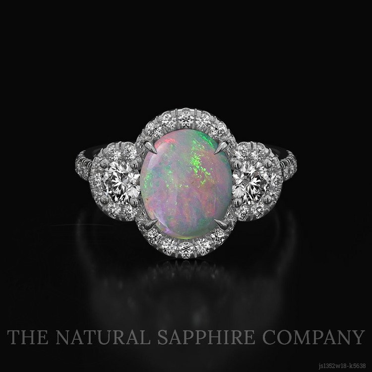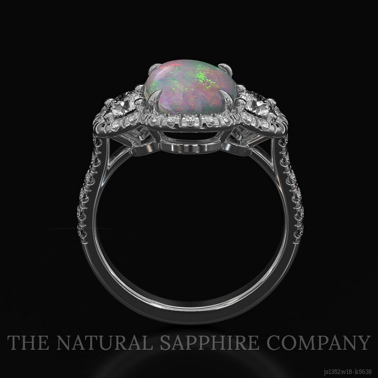 In summation, this exquisite ring is a celebration of nature's marvels, embodying the artistic expression of elite jewelry craftsmanship. It's a confluence of vibrant opal displays and the unparalleled sparkle of meticulously set diamonds, all resting on a foundation of enduring 18K white gold. The detailed selection and setting of each element promise not just an accessory, but an heirloom to be cherished and admired. Such integrity in design and material assure a purchase from The Natural Gemstone Company becomes a treasured story with each wear. A valuable investment for stone connoisseurs, each facet of this ring whispers elegance embedded in solid groundwork, a quality hard to rival on the gem market today.