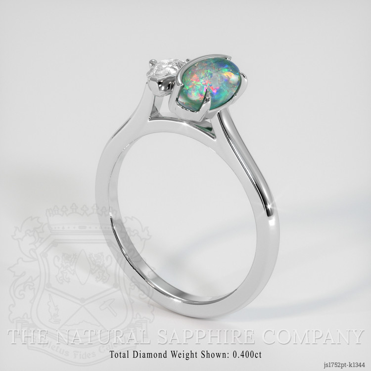 Introducing a masterpiece from The Natural Gemstone Company, this exquisite ring is designed for those who appreciate the artistry of fine jewelry. At its heart is a beautiful, translucent opal sourced from Australia, weighing 0.85 carats. The opal, known for its captivating play of colors, is expertly crafted into an oval cabochon cut with dimensions of 7.80 x 4.25 x 3.99 mm. Its clarity is rated as very slightly included at eye level, ensuring that its intense color saturation is unobstructed and vividly displayed. Finished with an excellent polish, this opal reflects light with a magical luminescence.