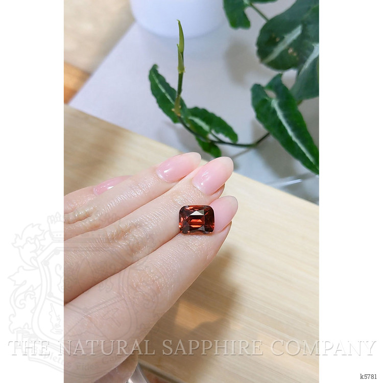 Introducing a masterpiece of elegance and heritage from The Natural Gemstone Company, where tradition and timeless beauty merge in this exquisite ring. This stunning piece showcases a remarkable 7.18 carat orangish red garnet, a gemstone with origins as rich and colorful as its hues, sourced from the enchanting landscapes of Madagascar. The garnet, known for its historical significance, has adorned royalty and nobility for centuries. Its cushion shape and mixed brilliant cut bring out the fiery depths and vibrant intensity, with the dimensions of 11.95 x 9.84 x 6.69 mm. The clarity graces a level of very slightly included, evaluated meticulously at eye level, providing an intense color saturation unlike any other.