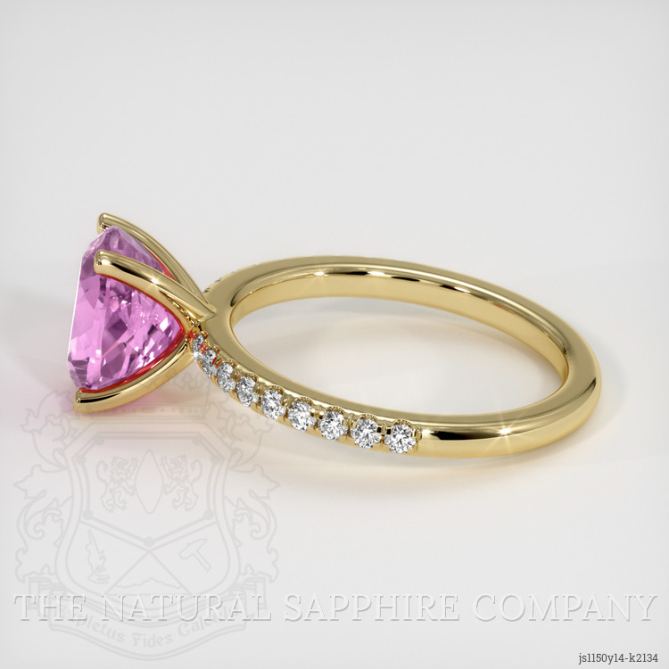 The ring features a beautiful, transparent 2.16 carat oval shape pink kunzite with the dimensions of 9.07 x 6.45 x 5.26 mm and a mixed brilliant cut. It has a clarity grade of very slightly included (evaluated at eye level), medium color saturation, and an excellent polish. The origin of this kunzite is Afghanistan.
