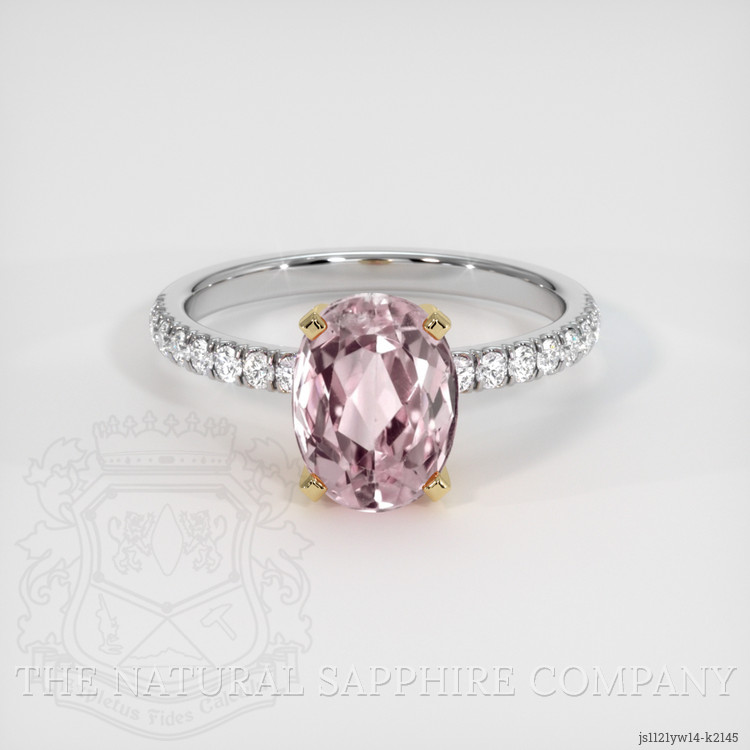 The ring features a beautiful, transparent 2.52 carat oval shape pink kunzite with the dimensions of 9.05 x 6.92 x 5.29 mm and a mixed brilliant cut. It has a clarity grade of slightly included (evaluated at eye level), medium light color saturation, and an excellent polish. The origin of this kunzite is Afghanistan.