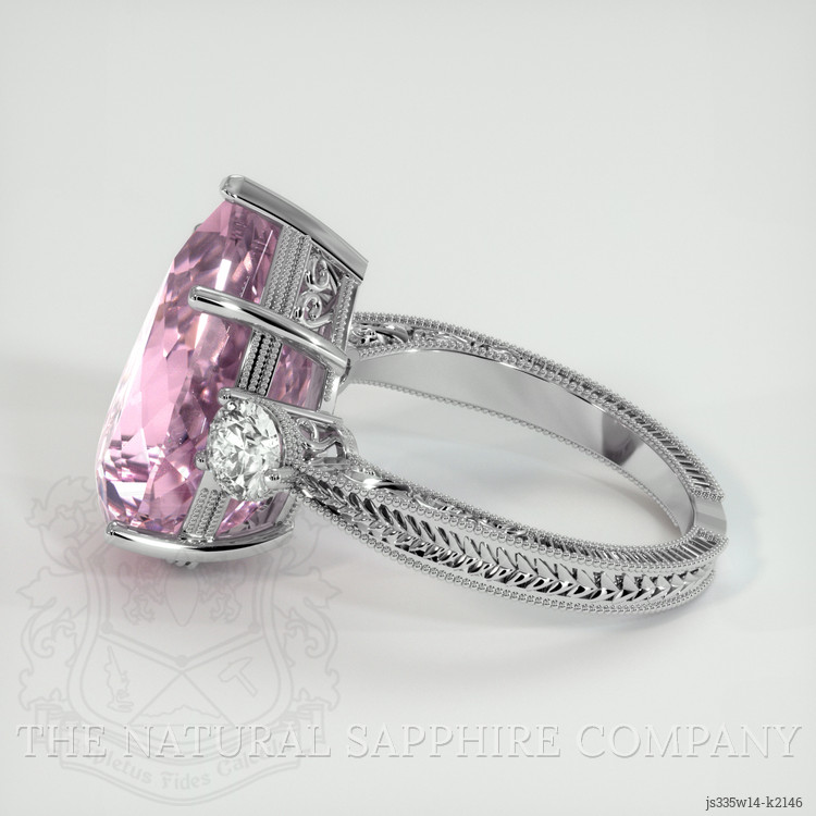 Set in luxurious 14K white gold, this masterpiece embodies timeless elegance and sophistication. The gentle glow of gold offers a stable embrace for the kunzite and diamonds, ensuring both beauty and strength. Immortalizing moments and crafting unforgettable memories, this ring promises to be more than a piece of jewelry. It is a celebration of life's most precious moments, awaiting the cherished honor of marking the milestones of love, joy and forever. Experience the enchantment that only The Natural Gemstone Company can bring into your life.