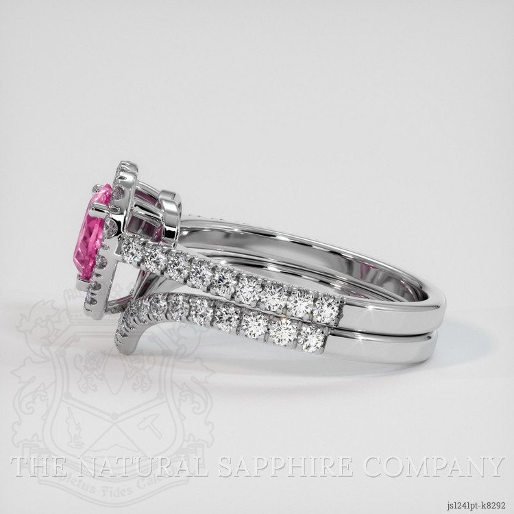 Every gemstone tells a story, and this particular pink tourmaline speaks volumes of elegance and class. Measuring 5.94 x 7.23 x 2.69 mm, its mixed brilliant cut ensures that light dances across every facet, radiating with the intense saturation akin to a sunset over the Indian Ocean. The clarity, graded as very slightly included at eye level, guarantees a purity that amplifies its color and brilliance. Accompanying this captivating centerpiece are meticulously selected white round shaped diamonds. Weighing approximately 0.27, 0.30, and 0.45 carats, these diamonds are of clarity grade VS1/VS2 and possess a prestigious F color grade, enveloping the tourmaline in a halo of elegance.