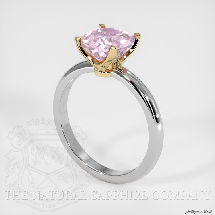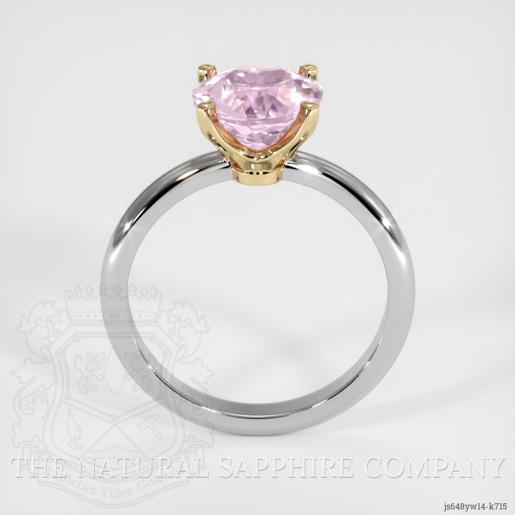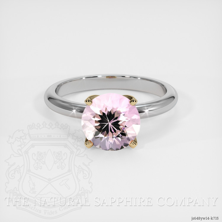 The ring features a beautiful, transparent 2.62 carat round shape pink tourmaline with the dimensions of 9.08 x 9.05 x 6.11 mm and a mixed brilliant cut. It has a clarity grade of eye clean (evaluated at eye level), light color saturation, and an excellent polish. The origin of this tourmaline is Nigeria.