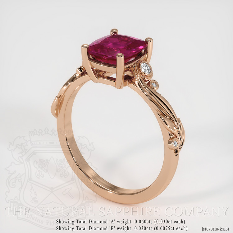 Accent Stones Rubellite Tourmaline Ring 1.55 Ct., 18K Rose Gold