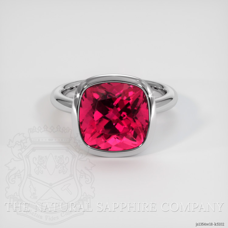 The men's ring features a beautiful, transparent 6.87 carat cushion shape pinkish red rubellitetourmaline with the dimensions of 11.28 x 11.27 x 8.61 mm and a mixed brilliant cut. The rich history and timeless nature of the rubellitetourmaline speak to its enduring appeal, as gemstones from Brazil are known for their vibrant hues and clarity. This gem's inclusion adds character and uniqueness to the ring, reflecting centuries-old geological processes that have crafted its internal patterns. These inclusions are like natural signatures, making each piece truly one-of-a-kind and infusing the gem with a unique charm that cannot be replicated. The rubellitetourmaline holds a clarity grade of eye clean (evaluated at eye level), boasts vivid color saturation, and has an excellent polish, underscoring the superior craftsmanship involved in bringing out its beauty. Set entirely in 18K white gold, the sleek, modern design of the ring provides a perfect contrast to the classic allure of the gemstone. The pristine polish of the 18K white gold band enhances the gemstone's vivid coloration while providing a timeless backdrop that complements the rich heritage of the rubellitetourmaline. This ring is more than just a piece of jewelry; it is a testament to tradition, legacy, and the natural beauty of the Earth’s buried treasures. Such a design is sure to appeal to those who value traditional elegance and the enduring legacy of authentic craftsmanship.