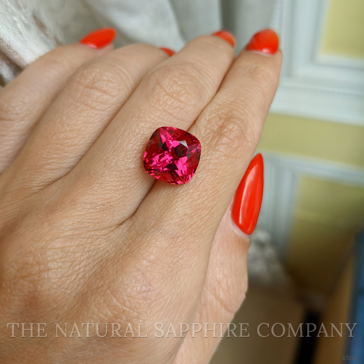 The men's ring features a beautiful, transparent 6.87 carat cushion shape pinkish red rubellitetourmaline with the dimensions of 11.28 x 11.27 x 8.61 mm and a mixed brilliant cut. The rich history and timeless nature of the rubellitetourmaline speak to its enduring appeal, as gemstones from Brazil are known for their vibrant hues and clarity. This gem's inclusion adds character and uniqueness to the ring, reflecting centuries-old geological processes that have crafted its internal patterns. These inclusions are like natural signatures, making each piece truly one-of-a-kind and infusing the gem with a unique charm that cannot be replicated. The rubellitetourmaline holds a clarity grade of eye clean (evaluated at eye level), boasts vivid color saturation, and has an excellent polish, underscoring the superior craftsmanship involved in bringing out its beauty. Set entirely in 18K white gold, the sleek, modern design of the ring provides a perfect contrast to the classic allure of the gemstone. The pristine polish of the 18K white gold band enhances the gemstone's vivid coloration while providing a timeless backdrop that complements the rich heritage of the rubellitetourmaline. This ring is more than just a piece of jewelry; it is a testament to tradition, legacy, and the natural beauty of the Earth’s buried treasures. Such a design is sure to appeal to those who value traditional elegance and the enduring legacy of authentic craftsmanship.