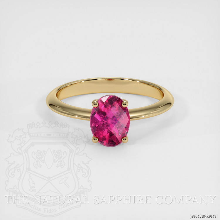 The rubellite, painstakingly polished to excellence, is cradled gracefully within a 14K yellow gold setting. The richness of the gold provides a perfect harmony, accentuating the vibrant hues of the gemstone while ensuring durability and timeless appeal. This bespoke creation is a reflection of both tradition and modernity, a testament to The Natural Gemstone Company’s dedication to bringing extraordinary gems into your life.