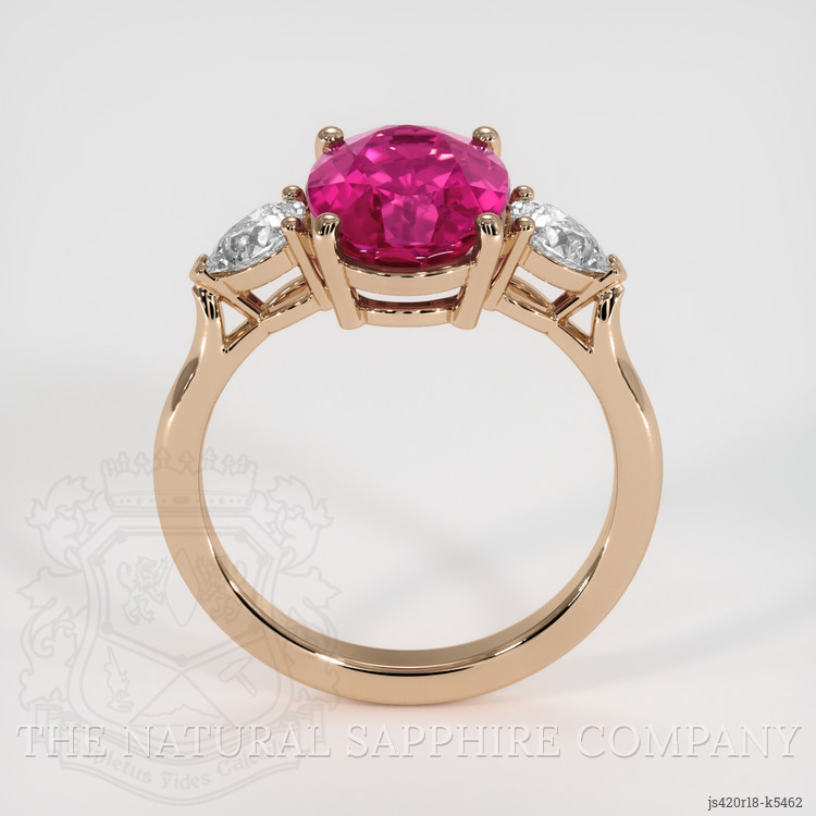 This exquisite ring is a testament to rare craftsmanship and exclusivity. The centerpiece is a magnificent 3.20 carat oval-shaped pinkish-red rubellite tourmaline sourced directly from Mozambique. With its dimensions of 12.16 x 8.14 x 5.03 mm, this gemstone boasts a mixed brilliant cut that brings out its natural beauty, requiring minimal enhancement. The rubellite tourmaline features a slightly included clarity grade, evaluated at eye level, intense color saturation, and an excellent polish. Enhancing the allure of the central gemstone are the white pear-shaped diamonds. Each diamond weighs approximately 0.50 carats, with a clarity grade of Very Slightly Included (VS1, VS2) and a color grade of G. The ring is expertly crafted and set entirely in 18K Rose gold. This unique piece encompasses the essence of sophistication and rarity, making the owner part of an elite group who can claim such a unique and beautiful ring.