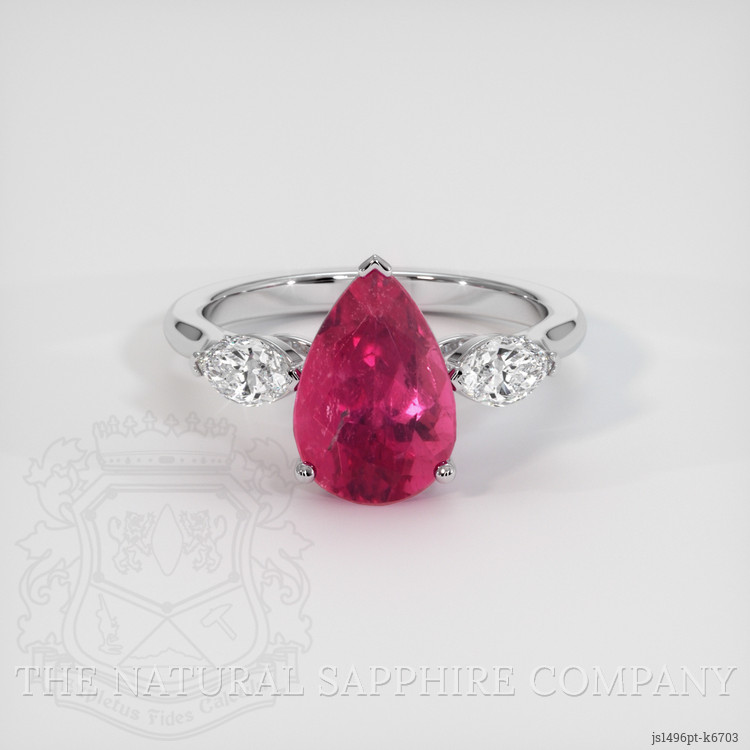 Three Stone Rubellite Tourmaline Ring 2.84 Ct., Platinum 950