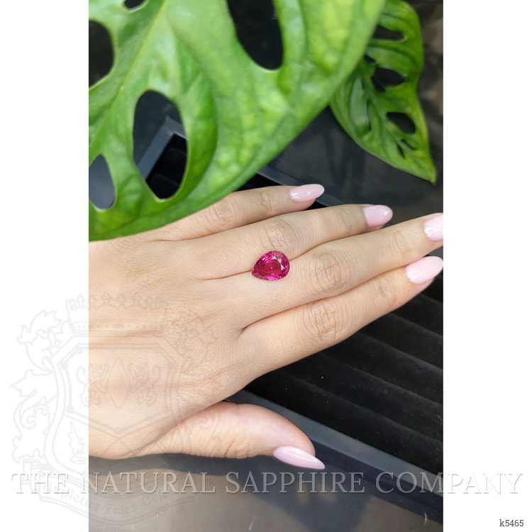 This stunning ring is the ideal statement piece for those seeking to exude confidence and elegance. Unlike many standard rings available on the market, this exceptional piece features a rare and beautiful 4.60 carat pear-shaped pinkish-red rubellite tourmaline with the precise dimensions of 12.46 x 9.53 x 6.02 mm and a mixed brilliant cut. The rubellite tourmaline's intense color saturation and an excellent polish ensure that it captivates attention and awe. Evaluated at eye level, the tourmaline possesses a slightly included clarity grade which ensures its uniqueness while enhancing its natural allure. The origin of this rare gemstone can be traced back to Mozambique, adding an exotic flair to its story.