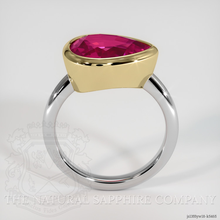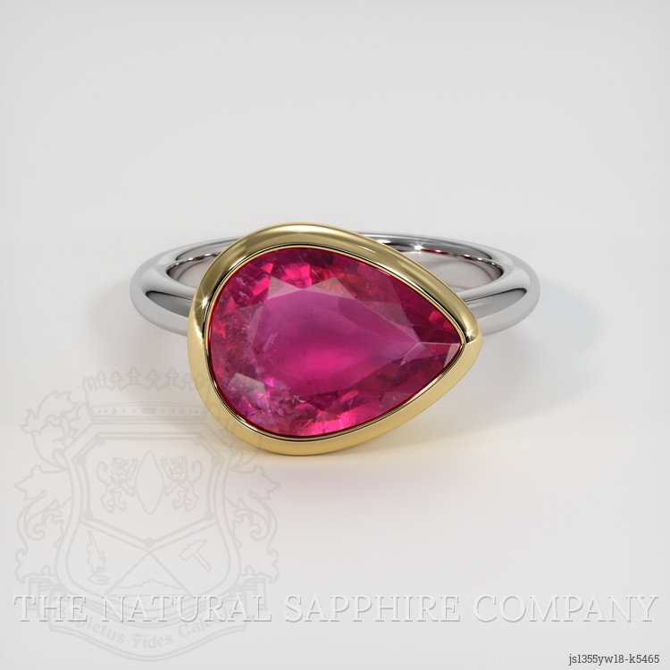 This exquisite ring stands out in the market due to the superior quality and craftsmanship that distinguishes it from other available options. Featuring a breathtaking 4.60 carat pear-shaped pinkish red rubellite tourmaline, this piece showcases impressive attributes like its mixed brilliant cut, semi-transparent clarity, and intense color saturation. With dimensions of 12.46 x 9.53 x 6.02 mm, the rubellite has a clarity grade of slightly included, evaluated at eye level. Its origin from Mozambique speaks volumes of its authenticity and rarity. The elegant combination of 18K yellow gold and 18K white gold in the setting adds a touch of timeless elegance and durability, characteristics that elevate this piece above others on the market.