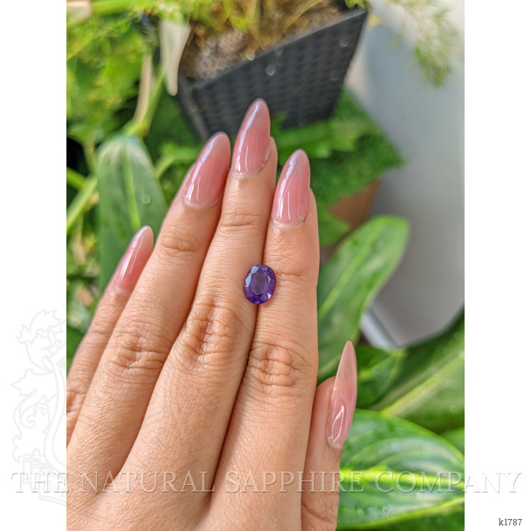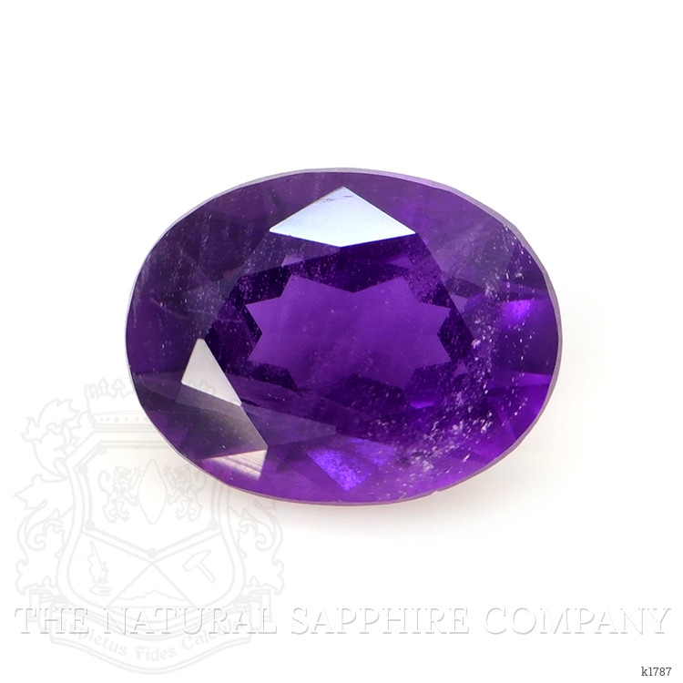 The men's ring features a beautiful, transparent 1.63 carat oval shape purple amethyst with the dimensions of 9.10 x 7.02 x 4.64 mm and a mixed brilliant cut. It has a clarity grade of very slightly included (evaluated at eye level), intense color saturation, and an excellent polish. The origin of this amethyst is Brazil.