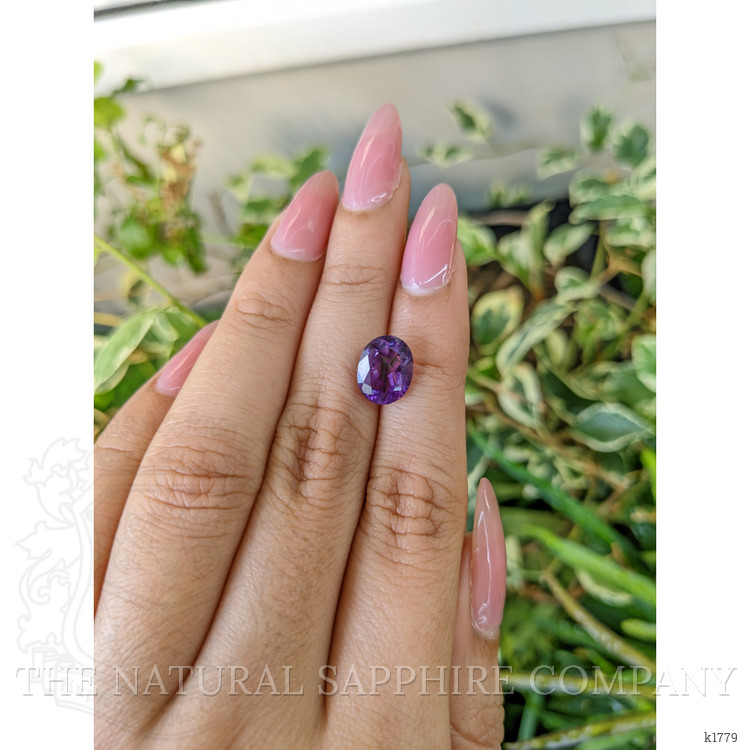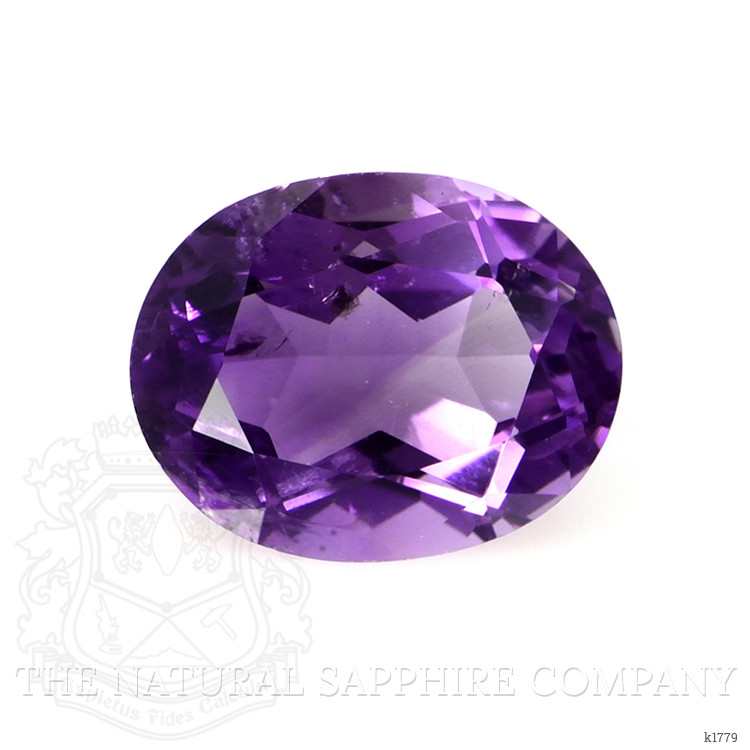 The men's ring features a beautiful, transparent 2.76 carat oval shape purple amethyst with the dimensions of 10.21 x 8.09 x 5.53 mm and a mixed brilliant cut. It has a clarity grade of very slightly included (evaluated at eye level), intense color saturation, and an excellent polish. The origin of this amethyst is Brazil.