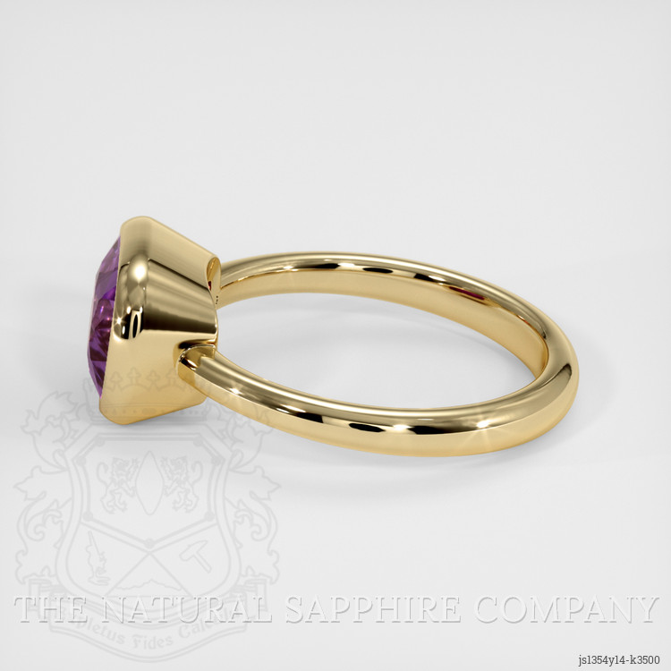 The men's ring features a beautiful, transparent 3.01 carat cushion shape purple spinel with the dimensions of 10.36 x 7.60 x 4.79 mm and a mixed brilliant cut. It has a clarity grade of eye clean (evaluated at eye level), intense color saturation, and an excellent polish. The origin of this spinel is Tanzania.