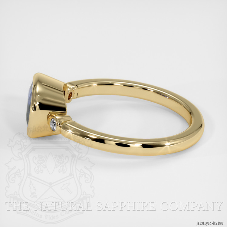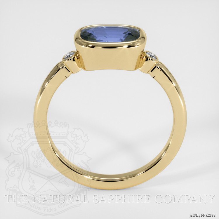 The ring features a beautiful, transparent 1.76 carat cushion shape purplish blue cobaltspinel with the dimensions of 8.17 x 6.24 x 3.85 mm and a mixed brilliant cut. It has a clarity grade of very slightly included (evaluated at eye level), medium intense color saturation, and an excellent polish. The origin of this cobaltspinel is Ceylon (Srilanka).