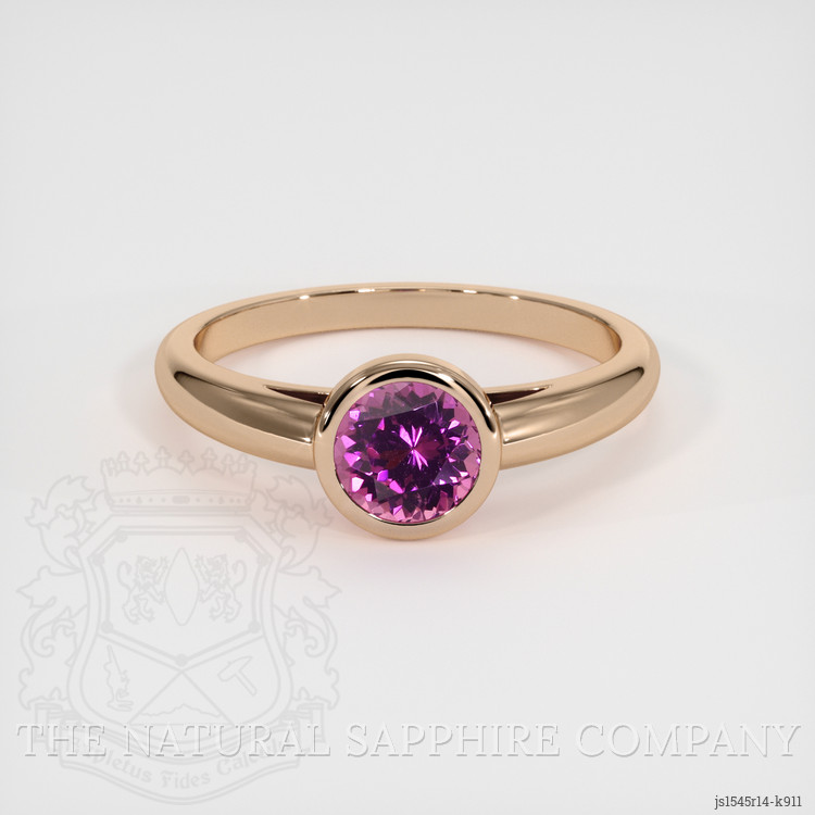 The men's ring features a beautiful, transparent 0.88 carat round shape purplish pink rhodolitegarnet with the dimensions of 5.54 x 5.51 x 3.85 mm and a mixed brilliant cut. It has a clarity grade of eye clean (evaluated at eye level), vivid color saturation, and an excellent polish. The origin of this rhodolitegarnet is Tanzania.