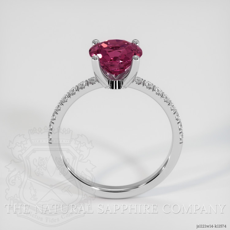 Introducing a masterpiece of elegance and sophistication from The Natural Gemstone Company, this exquisite ring showcases a splendid GIA-certified 2.43 carat purplish pink rhodolite garnet. With dimensions of 8.10 x 8.11 x 5.16 mm, this round-shaped gem features a mixed brilliant cut that enhances its vibrant presence. The rhodolite garnet hails from the renowned gemstone-rich lands of Tanzania, known for producing gems of superior quality. With its vivid color saturation and excellent polish, this gem gleams with an unrivaled lustrous allure. The clarity grade is eye clean, ensuring that you experience its beauty without any visible imperfections.