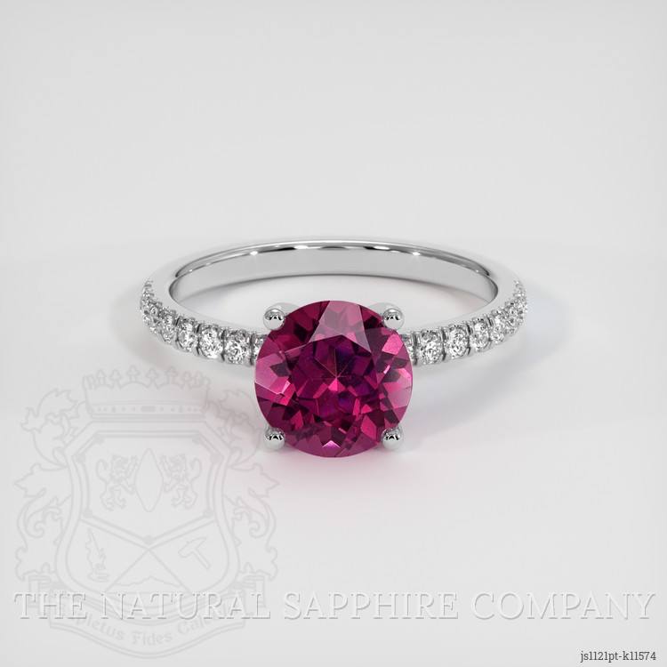 Introducing a masterpiece of elegance and sophistication from The Natural Gemstone Company, this exquisite ring showcases a splendid GIA-certified 2.43 carat purplish pink rhodolite garnet. With dimensions of 8.10 x 8.11 x 5.16 mm, this round-shaped gem features a mixed brilliant cut that enhances its vibrant presence. The rhodolite garnet hails from the renowned gemstone-rich lands of Tanzania, known for producing gems of superior quality. With its vivid color saturation and excellent polish, this gem gleams with an unrivaled lustrous allure. The clarity grade is eye clean, ensuring that you experience its beauty without any visible imperfections.