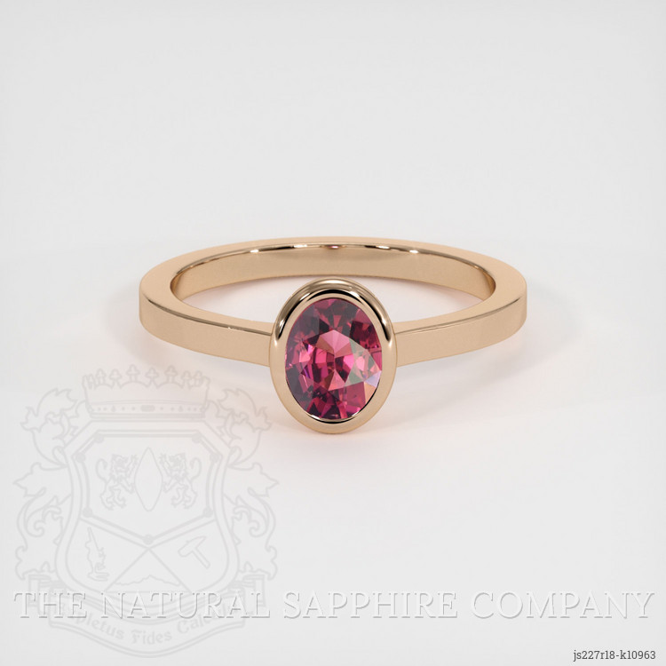 In terms of craftsmanship, the garnet is held in a band of 18K Rose gold, a metal celebrated for its durability and timeless elegance. The warm hues of the rose gold complement the garnet's intense color, forming a harmonious blend that exudes sophistication. This particular combination of materials not only elevates the ring's aesthetic appeal but also underlines its distinction from commonly available alternatives, which often lack such refined detailing and quality assured by The Natural Gemstone Company.