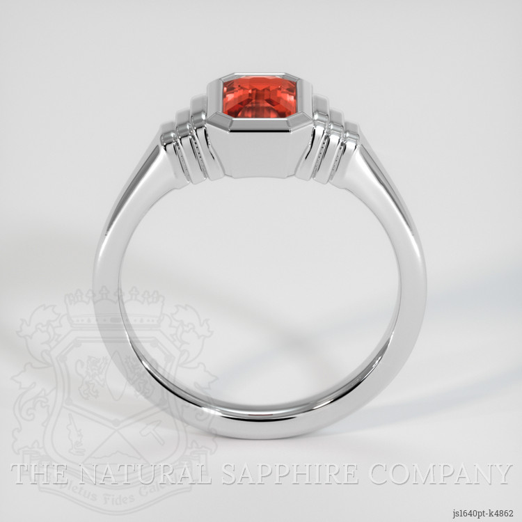 The men's ring features a beautiful, transparent 0.66 carat emerald cut shape red andalusite with the dimensions of 7.00 x 4.66 x 2.97 mm and a mixed brilliant cut. It has a clarity grade of eye clean (evaluated at eye level), intense color saturation, and an excellent polish. The origin of this andalusite is Brazil.