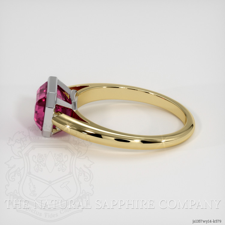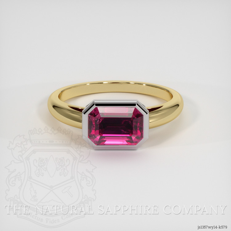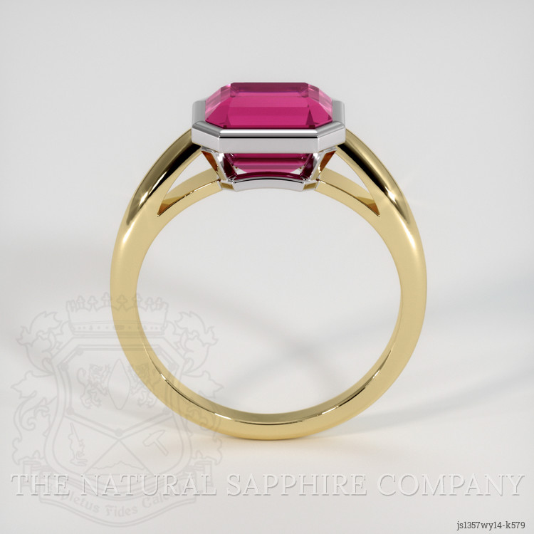 The men's ring features a beautiful, transparent 1.98 carat emerald cut shape red tourmaline with the dimensions of 8.02 x 5.75 x 5.50 mm and a emerald cut. It has a clarity grade of slightly included (evaluated at eye level), intense color saturation, and an excellent polish. The origin of this tourmaline is Brazil.