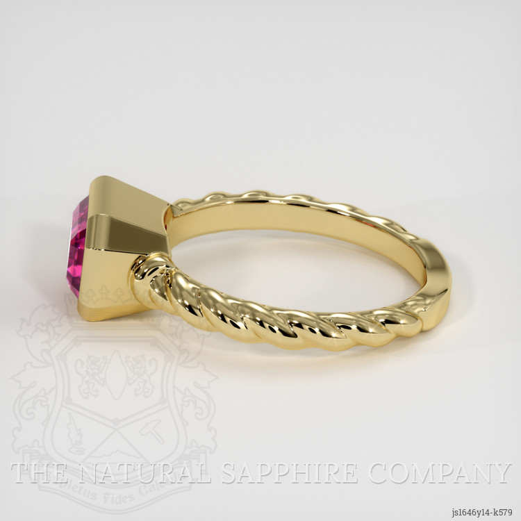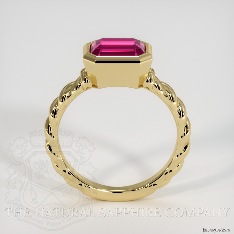 The men's ring features a beautiful, transparent 1.98 carat emerald cut shape red tourmaline with the dimensions of 8.02 x 5.75 x 5.50 mm and a emerald cut. It has a clarity grade of slightly included (evaluated at eye level), intense color saturation, and an excellent polish. The origin of this tourmaline is Brazil.