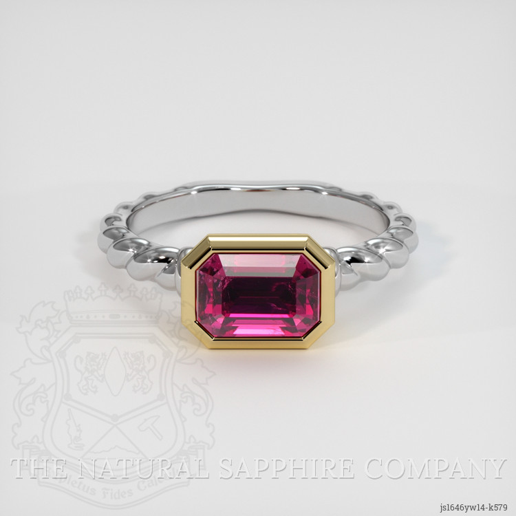 The men's ring features a beautiful, transparent 1.98 carat emerald cut shape red tourmaline with the dimensions of 8.02 x 5.75 x 5.50 mm and a emerald cut. It has a clarity grade of slightly included (evaluated at eye level), intense color saturation, and an excellent polish. The origin of this tourmaline is Brazil.