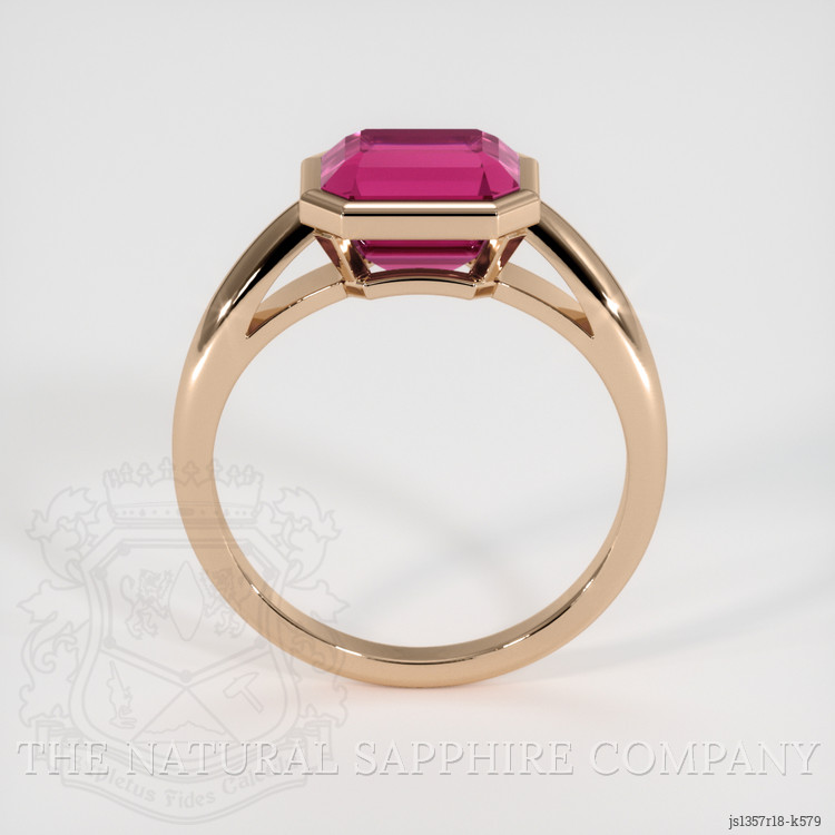 The men's ring features a beautiful, transparent 1.98 carat emerald cut shape red tourmaline with the dimensions of 8.02 x 5.75 x 5.50 mm and a emerald cut. It has a clarity grade of slightly included (evaluated at eye level), intense color saturation, and an excellent polish. The origin of this tourmaline is Brazil.