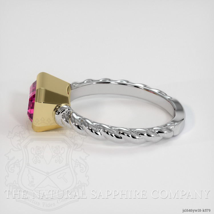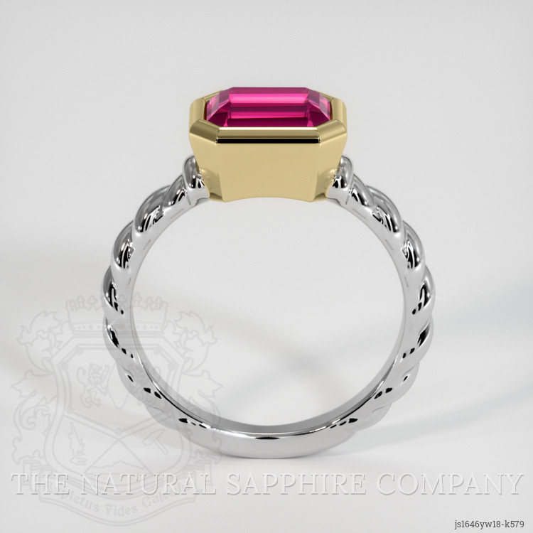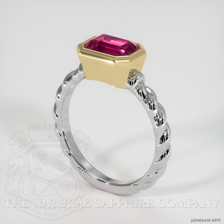 The men's ring features a beautiful, transparent 1.98 carat emerald cut shape red tourmaline with the dimensions of 8.02 x 5.75 x 5.50 mm and a emerald cut. It has a clarity grade of slightly included (evaluated at eye level), intense color saturation, and an excellent polish. The origin of this tourmaline is Brazil.