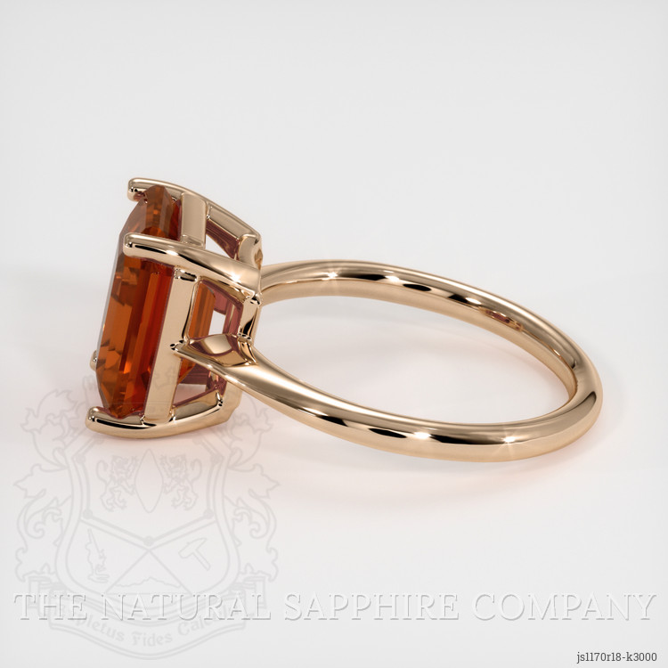 The ring features a beautiful, transparent GIA certified Reddish Orange 4.55 carat emerald cut shape reddish orange grossulargarnet with the dimensions of 11.03 x 8.45 x 5.20 mm and a emerald cut. It has a clarity grade of slightly included (evaluated at eye level), vivid color saturation, and an excellent polish. The origin of this grossulargarnet is Nambia.