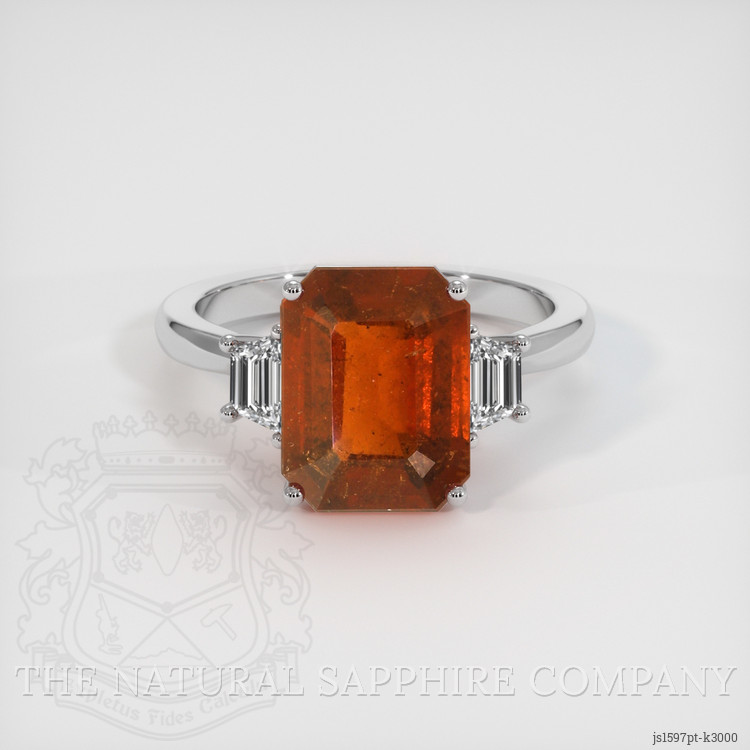 Three Stone Hessonite Garnet Ring 4.55 Ct., Platinum 950