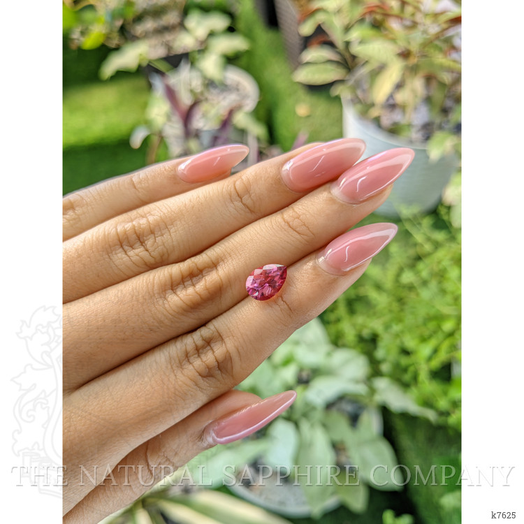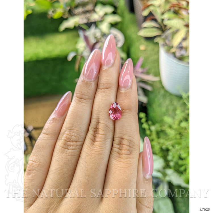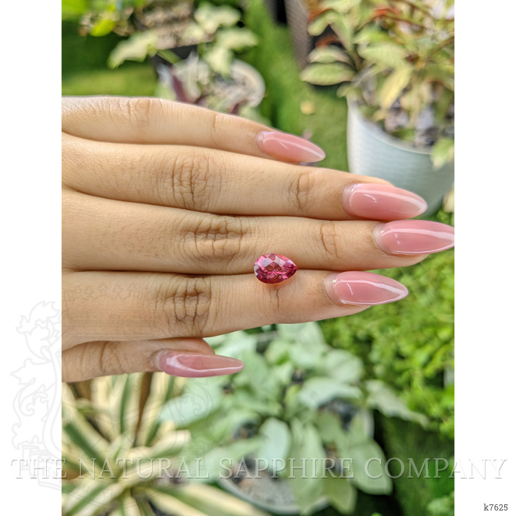At The Natural Gemstone Company, we believe that every special moment deserves to be celebrated with a piece of jewelry as unique and enduring as the love it symbolizes. Introducing our exquisite platinum ring, featuring a breathtaking 2.62 carat reddish pink topaz, this masterpiece shines with an ethereal brilliance that echoes the eternal splendor of a cherished bond. The topaz, expertly crafted into an elegant pear shape with dimensions of 10.20 x 7.12 x 5.39 mm, whispers tales of devotion, its intense color saturation capturing the fiery passion of love’s deepest hues. Its checkerboard cut dances in the light, reminiscent of shared moments that light up your life, turning an ordinary day into a jubilant celebration.
