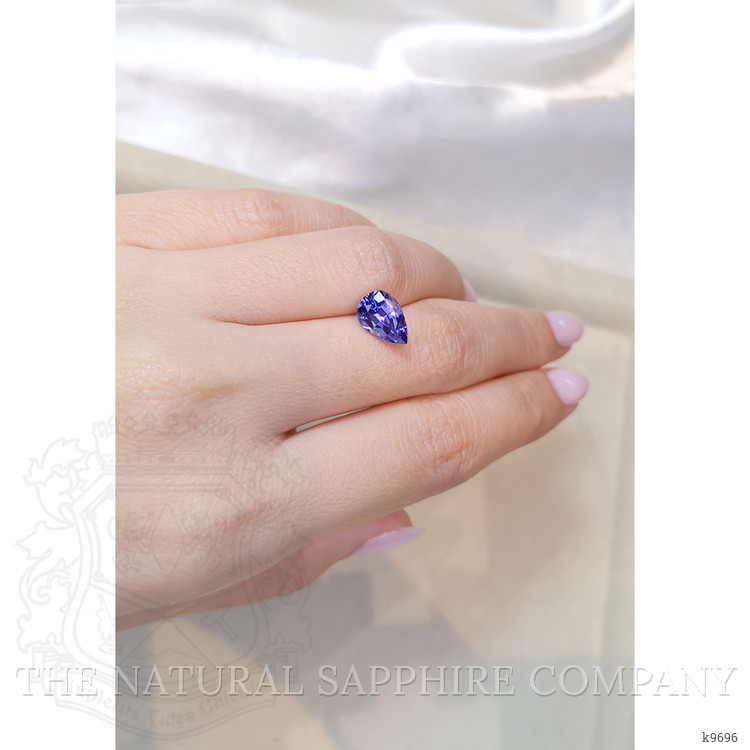 From the heart of Africa, nestled within the ancient, rolling hills of Tanzania, emerges one of nature’s most unique gifts: the exquisite violet tanzanite. This unparalleled gem embarks on a journey spanning millions of years, destined to captivate those fortunate enough to wear it. At The Natural Gemstone Company, we are honored to present a ring that transforms this enchanting story into a tangible treasure. Our 2.31 carat pear-shaped tanzanite, with its dimensions of 10.55 x 7.10 x 5.21 mm, undergoes a meticulous transformation, reflecting expert craftsmanship through its mixed brilliant cut. This masterpiece features a clarity grade of very slightly included at eye level, ensuring its natural origins remain authentic, while its intense color saturation dazzles with a vibrant play of deep violet hues. Furthermore, the gem’s excellent polish highlights its luster and brilliance, inviting admiration from every angle.