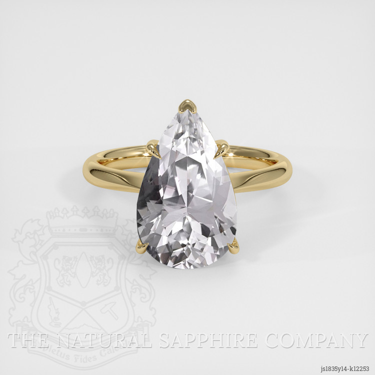 A white flame of rare clarity rests at the heart of this ring, a pear shaped phenakite weighing 5.46 carat, measuring 14.88 x 9.09 x 7.96 mm, with a mixed brilliant cut that dances from every angle. Its eye clean clarity and colorless saturation allow light to travel without obstruction, while an excellent polish and the fact that it has no enhancement speak to an honesty that is entirely natural, sourced from Russia. The setting is a study in restraint and poetry, wrought in warm 14K yellow gold, the metal fashioned into slender prongs and an open basket that lift the gem like a blossom toward the light. By minimizing metal across the crown and opening the gallery beneath the pavilion, the setting invites daylight to enter and return, amplifying the phenakite's inner fire and the scintillation of its mixed brilliant facets. The gold frames the stone without overwhelming it, the warm hue offering a gentle contrast that makes the stone appear more luminous by comparison, every facet outlined and every inclusion invisible to the eye at ordinary sight.
