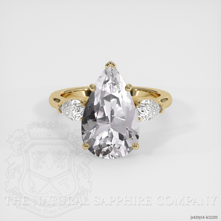 You have been searching for a ring that feels both rare and wearable, a piece that makes a statement without shouting, and this design from The Natural Gemstone Company answers that desire with quiet authority. At the heart sits a magnificent, transparent 5.46 carat pear shaped white phenakite, measuring 14.88 x 9.09 x 7.96 mm, cut in a mixed brilliant style to deliver scintillation and a glass like clarity that reads eye clean at normal viewing distances, with colorless saturation, excellent polish, and no enhancement. This Russian origin phenakite is lifted by two pear shaped lab grown diamonds weighing approximately 0.50 carats total, graded Very Slightly Included VS1 and VS2, color E, chosen to echo the center stone geometry while sharpening the overall presence. Set entirely in warm 14K yellow gold, this ring balances cool, crystalline brilliance with a classic, luminous gold tone, making it suitable for an engagement, a collection highlight, or a milestone gift that signifies refined taste.
