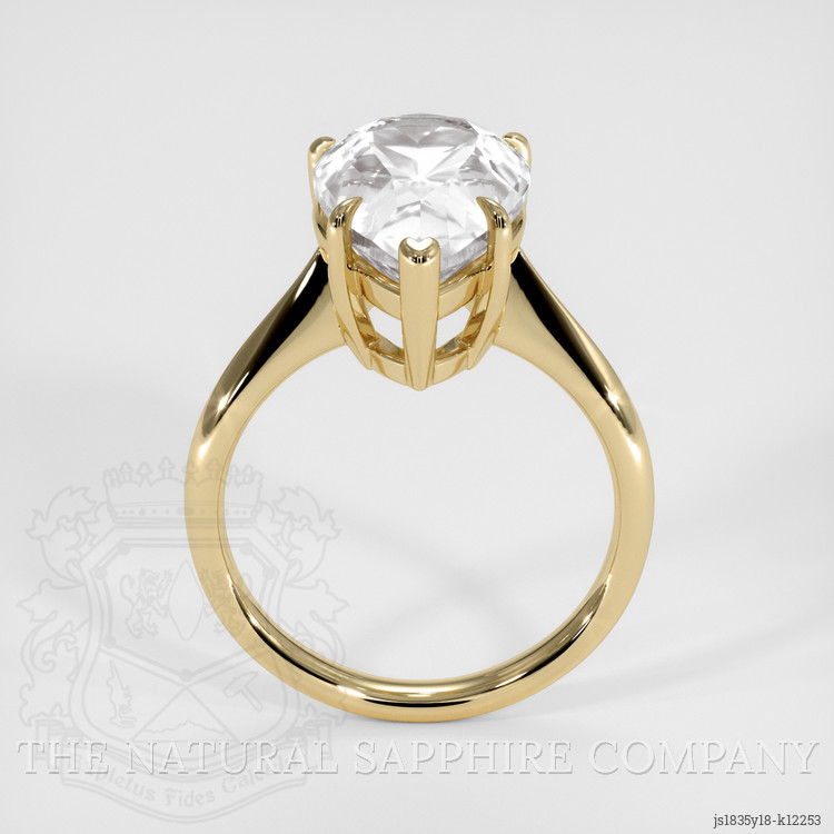 A white flame of rare clarity rests at the heart of this ring, a pear shaped phenakite weighing 5.46 carat, measuring 14.88 x 9.09 x 7.96 mm, with a mixed brilliant cut that dances from every angle. Its eye clean clarity and colorless saturation allow light to travel without obstruction, while an excellent polish and the fact that it has no enhancement speak to an honesty that is entirely natural, sourced from Russia. The setting is a study in restraint and poetry, wrought in warm 14K yellow gold, the metal fashioned into slender prongs and an open basket that lift the gem like a blossom toward the light. By minimizing metal across the crown and opening the gallery beneath the pavilion, the setting invites daylight to enter and return, amplifying the phenakite's inner fire and the scintillation of its mixed brilliant facets. The gold frames the stone without overwhelming it, the warm hue offering a gentle contrast that makes the stone appear more luminous by comparison, every facet outlined and every inclusion invisible to the eye at ordinary sight.