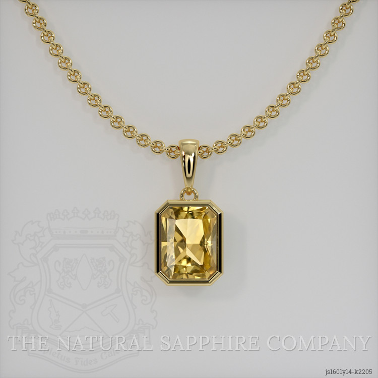 The pendant features a beautiful, transparent 1.68 carat radiant shape greenish yellow chrysoberyl with the dimensions of 7.69 x 6.08 x 4.27 mm and a radiant cut. It has a clarity grade of very slightly included (evaluated at eye level), intense color saturation, and an excellent polish. The origin of this chrysoberyl is Ceylon (Sri Lanka).