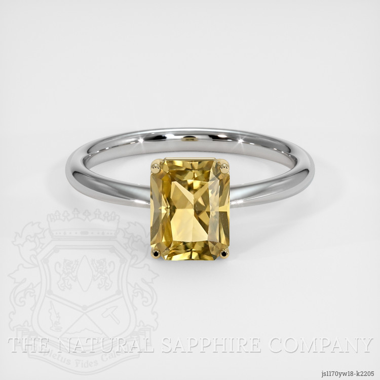 The ring features a beautiful, transparent 1.68 carat radiant shape greenish yellow chrysoberyl with the dimensions of 7.69 x 6.08 x 4.27 mm and a radiant cut. It has a clarity grade of very slightly included (evaluated at eye level), intense color saturation, and an excellent polish. The origin of this chrysoberyl is Ceylon (Sri Lanka).