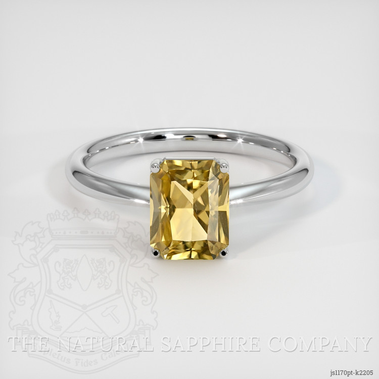 The ring features a beautiful, transparent 1.68 carat radiant shape greenish yellow chrysoberyl with the dimensions of 7.69 x 6.08 x 4.27 mm and a radiant cut. It has a clarity grade of very slightly included (evaluated at eye level), intense color saturation, and an excellent polish. The origin of this chrysoberyl is Ceylon (Sri Lanka).