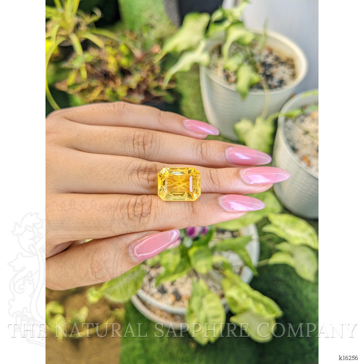 Introducing our exquisite men's ring, an embodiment of elegance and sophistication, brought to you by The Natural Gemstone Company. This remarkable piece features a stunning 13.37 carat emerald cut yellow citrine, which measures 16.98 x 13.21 x 7.50 mm. Its eye-clean clarity ensures astonishing brilliance, rivaling the highest standards set by well-known luxury jewelry brands. The intense color saturation of the citrine, free from any enhancement, speaks volumes of its natural beauty and the meticulous craftsmanship invested in its creation. Originating from Brazil, this gemstone is a rare find, prized for its vibrant color and exceptional quality.