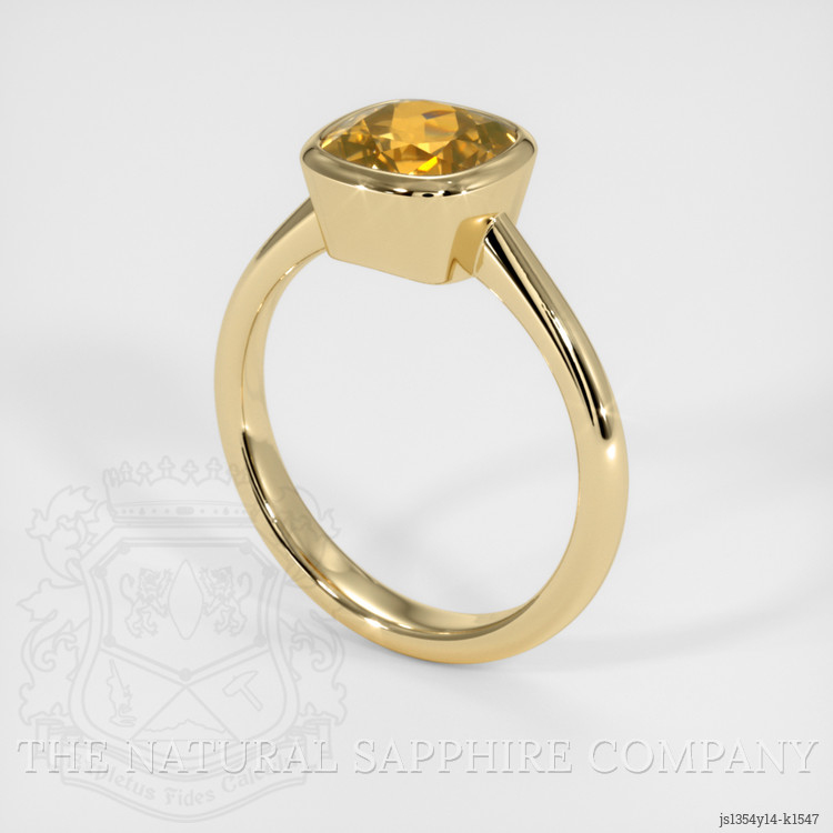 The men's ring features a beautiful, transparent 2.13 carat cushion shape yellowish brown sphene with the dimensions of 7.58 x 7.51 x 5.06 mm and a mixed brilliant cut. It has a clarity grade of slightly included (evaluated at eye level), intense color saturation, and an excellent polish. The origin of this sphene is Madagascar.