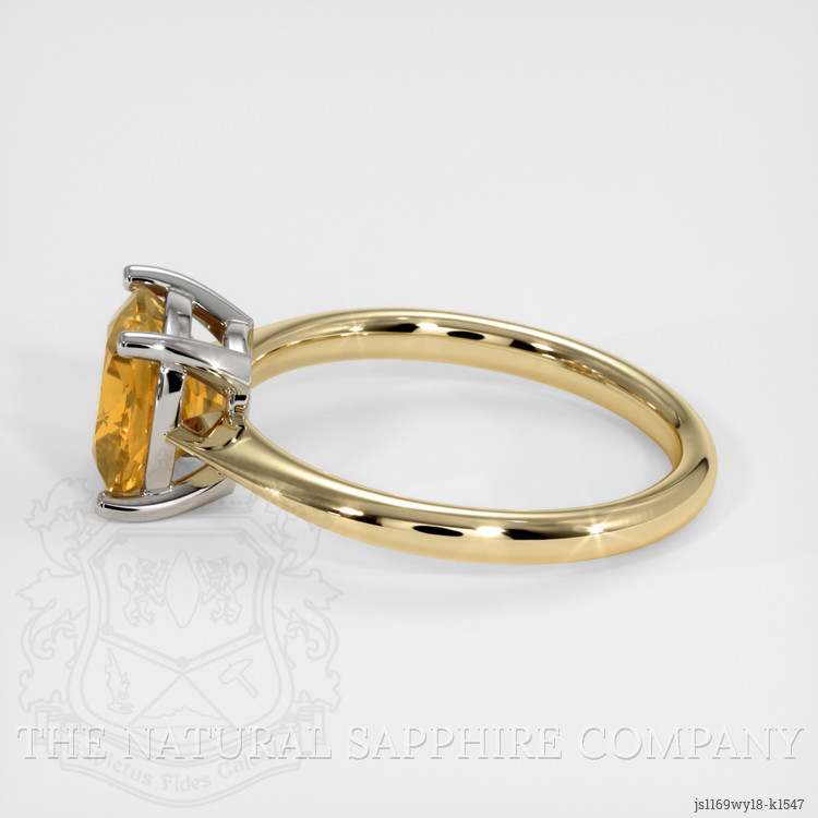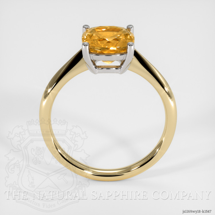 The ring features a beautiful, transparent 2.13 carat cushion shape yellowish brown sphene with the dimensions of 7.58 x 7.51 x 5.06 mm and a mixed brilliant cut. It has a clarity grade of slightly included (evaluated at eye level), intense color saturation, and an excellent polish. The origin of this sphene is Madagascar.