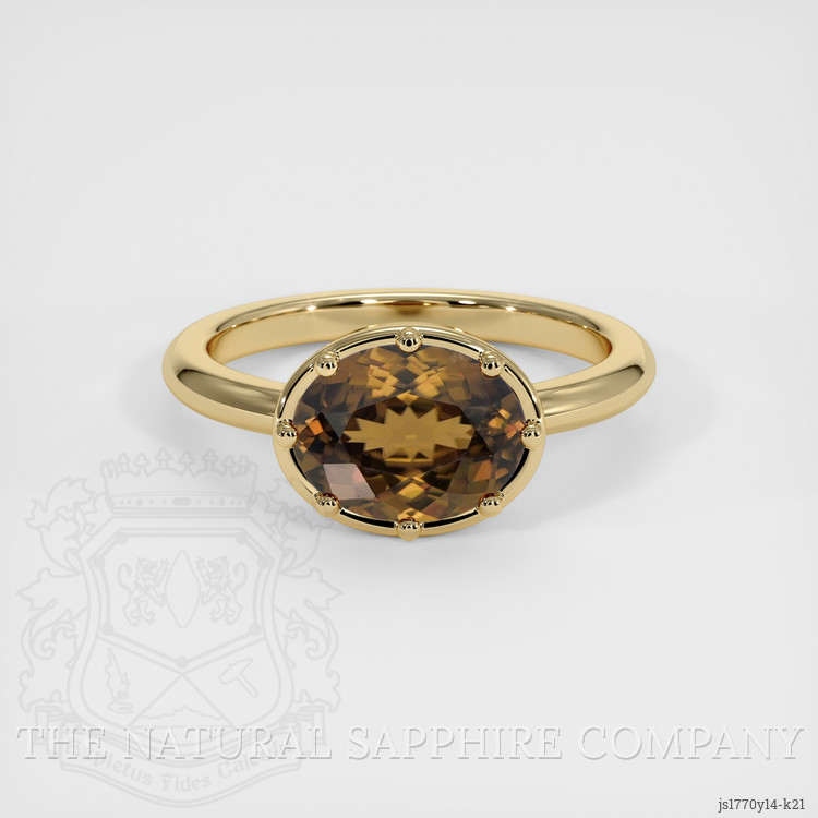 Discover the exquisite artistry embodied in our latest offering from The Natural Gemstone Company. This breathtaking ring showcases a mesmerizing 2.82 carat yellowish-brown zircon, hailing exclusively from the renowned gem-producing lands of Ceylon (Sri Lanka). Designed for those with a discerning taste for elegance and rarity, this gemstone is a testament to nature's unparalleled beauty. The oval shape and mixed brilliant cut ensure that each flicker of light dances across its surface, enchanting admirers with its dazzling charm. Measuring 9.50 x 7.26 x 4.23 mm, the zircon's dimensions are perfectly proportioned to make a statement of sophistication and grace. Its intense color saturation and excellent polish bear witness to the careful craftsmanship and attention to detail that went into creating this masterpiece.
